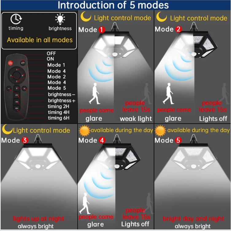 2. 3 Night Modes & Timers នេះពន្លឺព្រះអាទិត្យក្នុងផ្ទះដែលមានលក្ខណៈពិសេសឧបករណ៍ចាប់សញ្ញាចលនារសើបខ្ពស់។