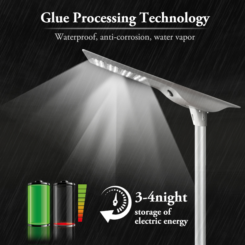 - 1. Integrated design, making full use of solar resources, simple, stylish, light, and extremely convenient to install. The integrated solar streetlight does not need to be pulled,and two or three people can install one in ten minutes. It provides a variety of installation methods. The lamp post is made from local materials.Iron pillars, wood, bamboo, plastic, etc., low cost.